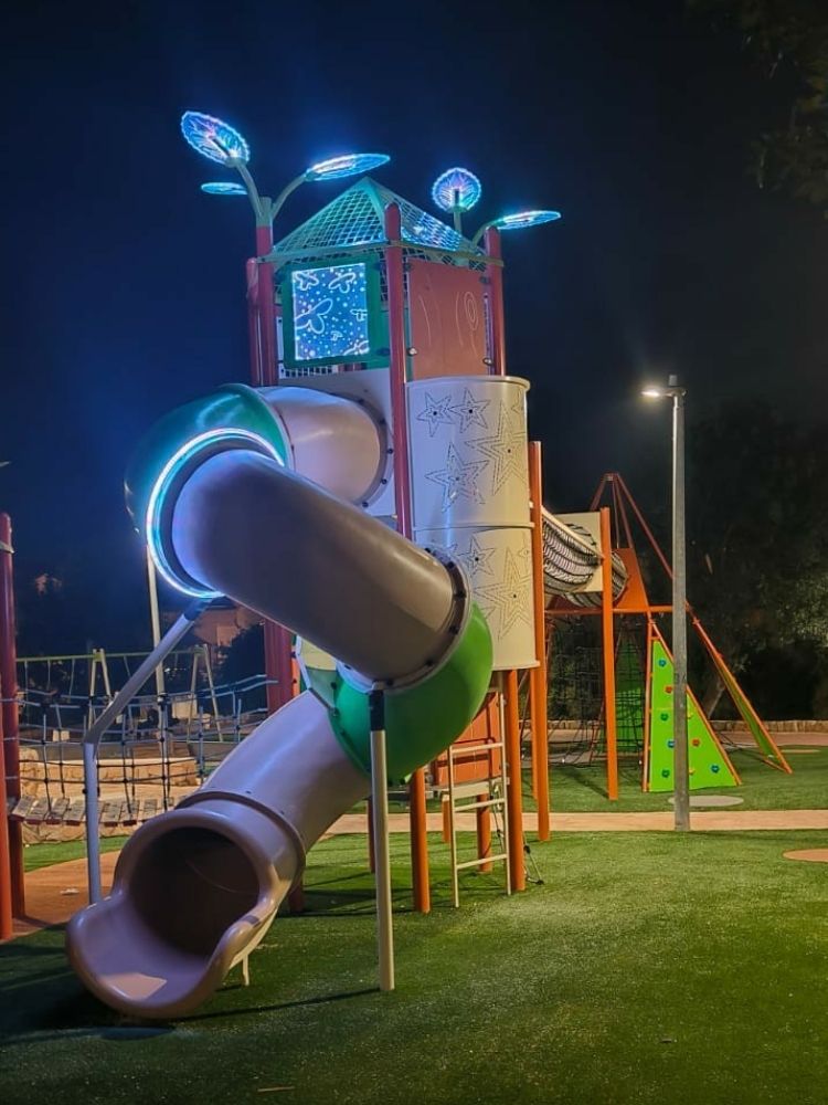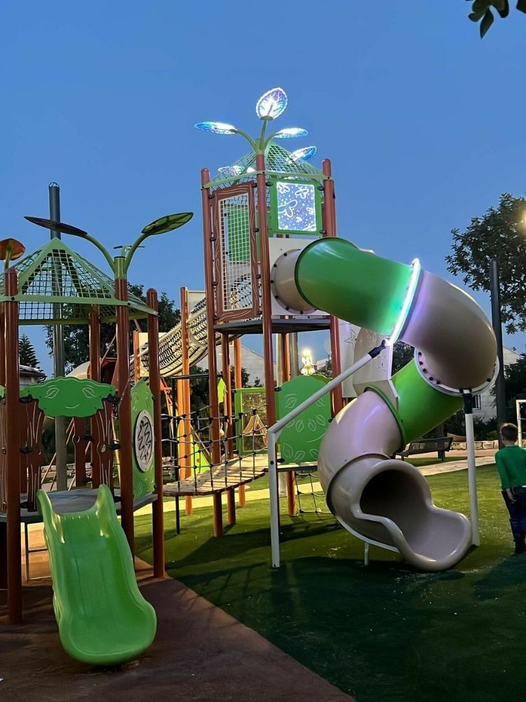 In many public spaces, the true test of a playground comes after sunset. This project was designed with evening use in mind, transforming the playground into a welcoming destination even when daylight fades. Instead of relying solely on surrounding street lighting, Psagot Playgrounds integrated LED illumination directly into the play structure, allowing the equipment itself to shape the nighttime experience.