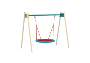 Around it are nest swings, a carousel, balancing and spring elements,