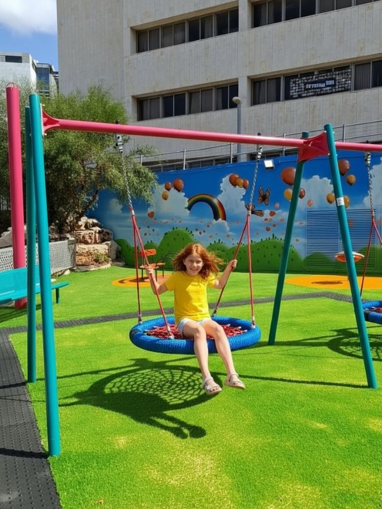The Psagot Playgrounds team is proud to have taken part in a project that reminds us all what truly matters – to give a moment of joy to those who need it most. Every detail was carefully chosen – from cheerful colors to musical tones and soft shading – all designed to radiate happiness, peace, and life.