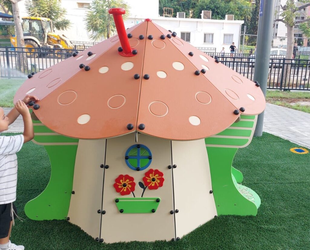 Surrounding the treehouse are carefully selected play elements that enhance the overall experience. These include an accessible Leaf & Rose swing, a charming Mushroom House play unit for toddlers, as well as a variety of carousels, swings, and additional play features. Together, these elements create a balanced playground that blends adventure, accessibility, and imagination—ensuring fun, comfort, and connection for children and adults alike.