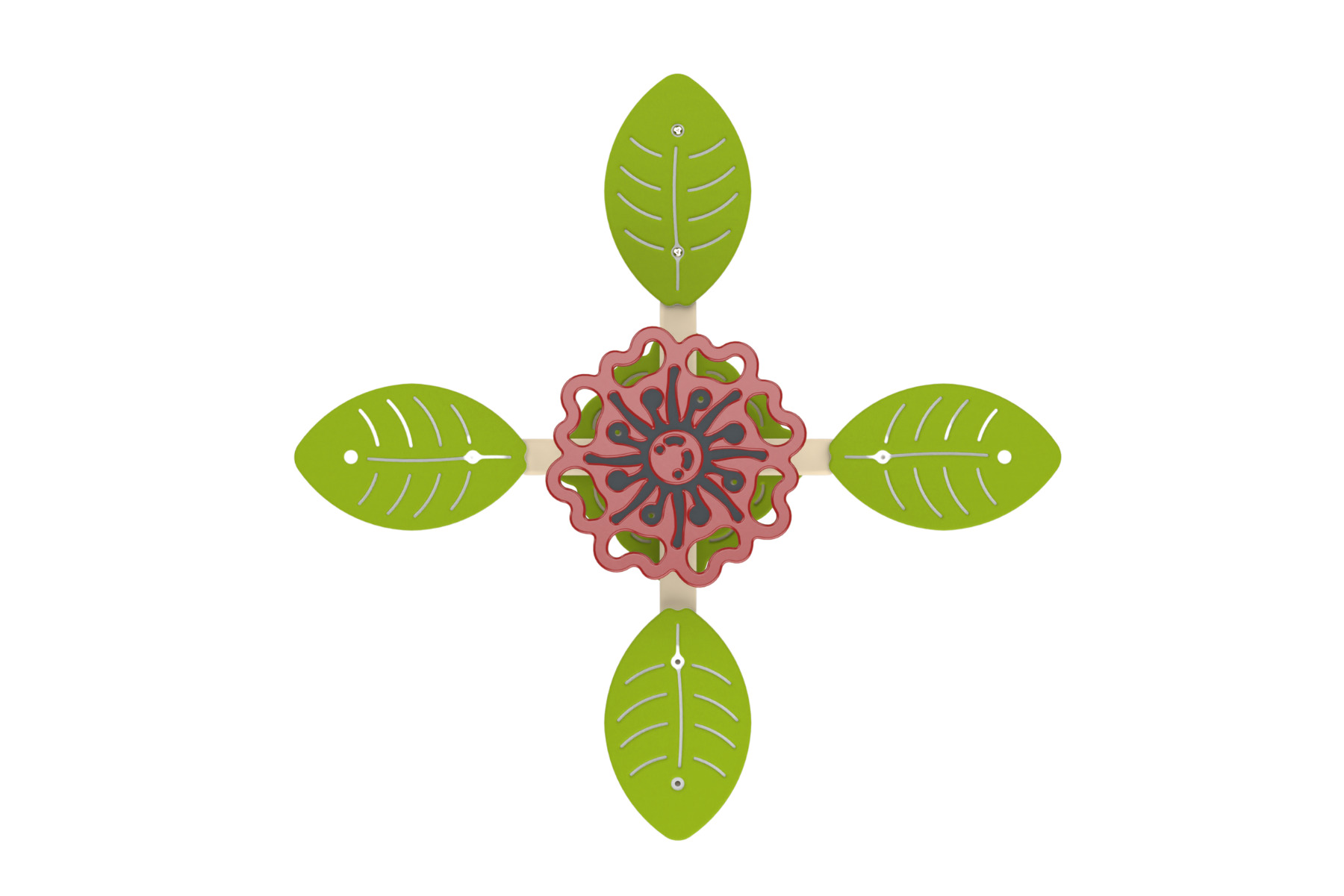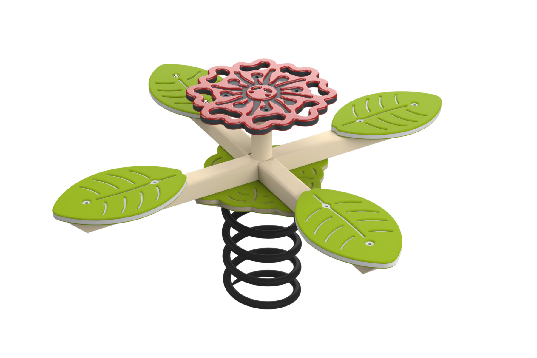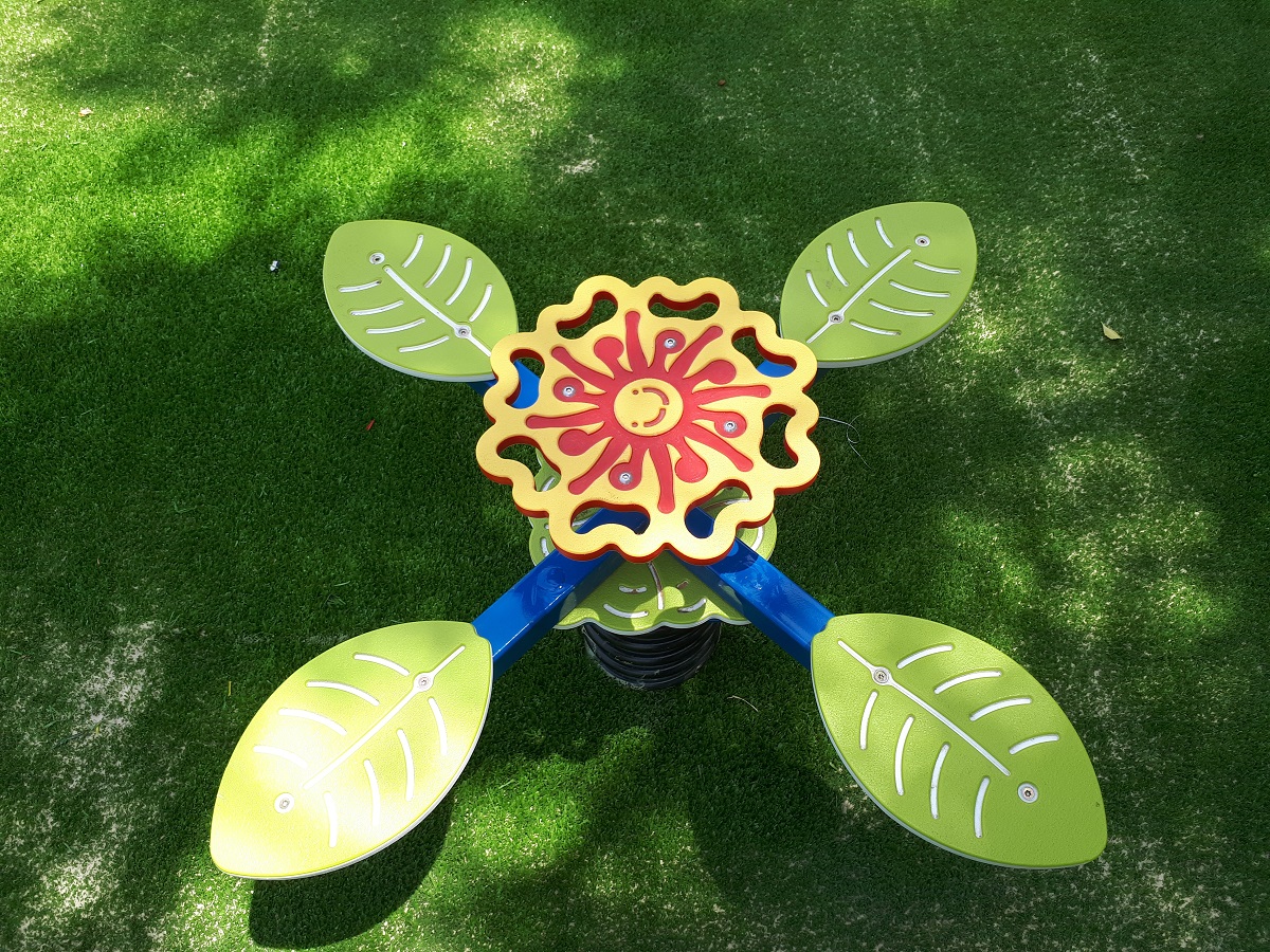 Rose-themed see-saw constructed of HDPE and metal. Perfect see-saw and balance games for up to four players. Helps develop communication and balance skills as well as self-confidence.
