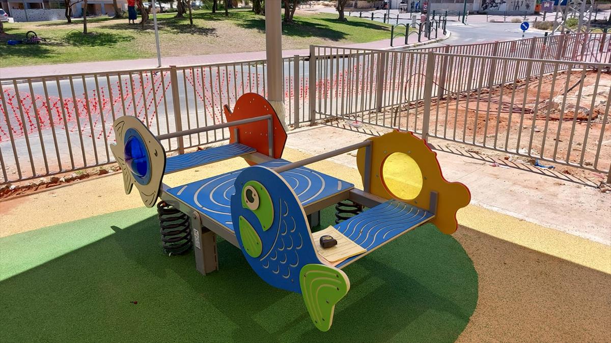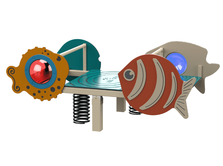 An HDPE play structure with fish figures mounted on springs. Perfectly suited for imaginative ocean sailing and role play games, it develops balance and core muscles and strengthens self-confidence.