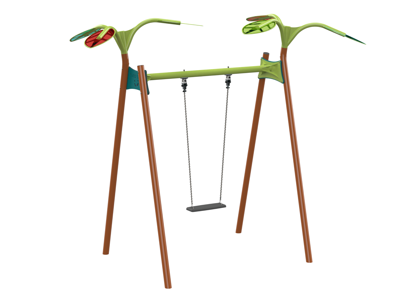 The swing set is one of the central and most beloved structures in any playground, offering a unique play experience that combines a sense of freedom, exhilaration and social interaction. Swinging provides children with a sense of excitement but can also be calming, all while helping to develop important motor skills such as balance and coordination. A single seat swing from the Forest series, its design is inspired by nature, with colorful leaf crowns made of semi-transparent polycarbonate that add a magical and unique dimension to the playset.