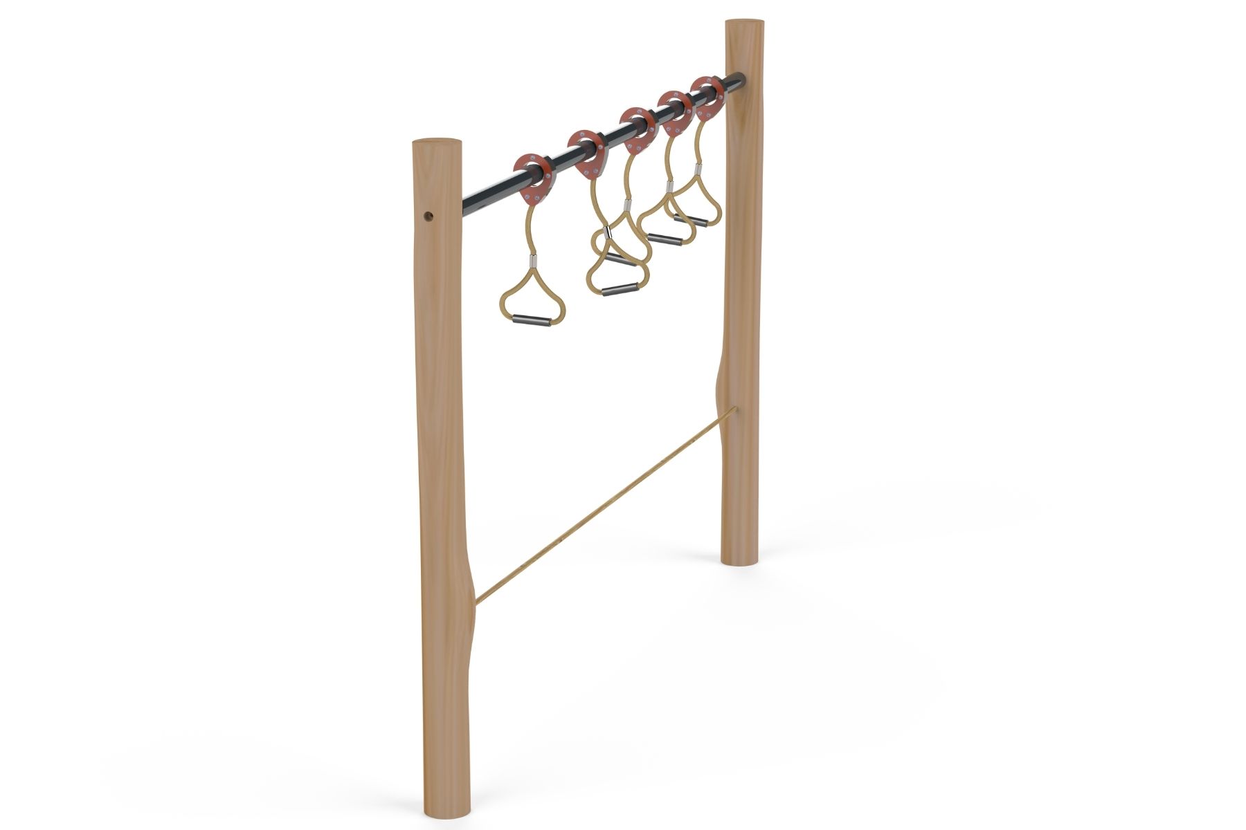 The Indiana structure is part of the Robinia Wood fitness course designed for challenging and adventurous play. It features handholds that provide climbing and movement challenges for children, aimed at developing strength, balance, and coordinated movement. Indiana can be used as part of a complete obstacle course or as an independent structure that combines fun and challenge in playgrounds and public parks.