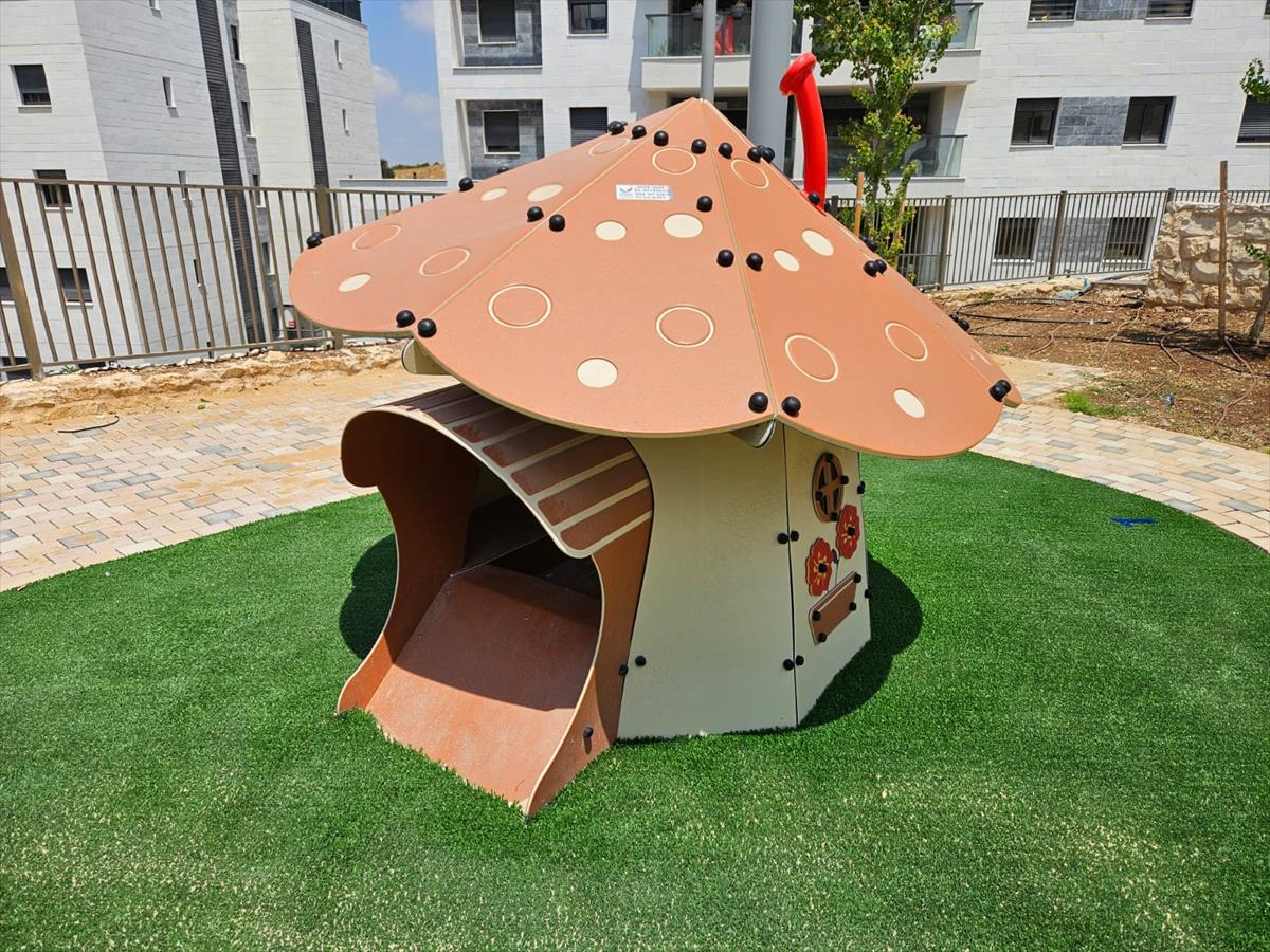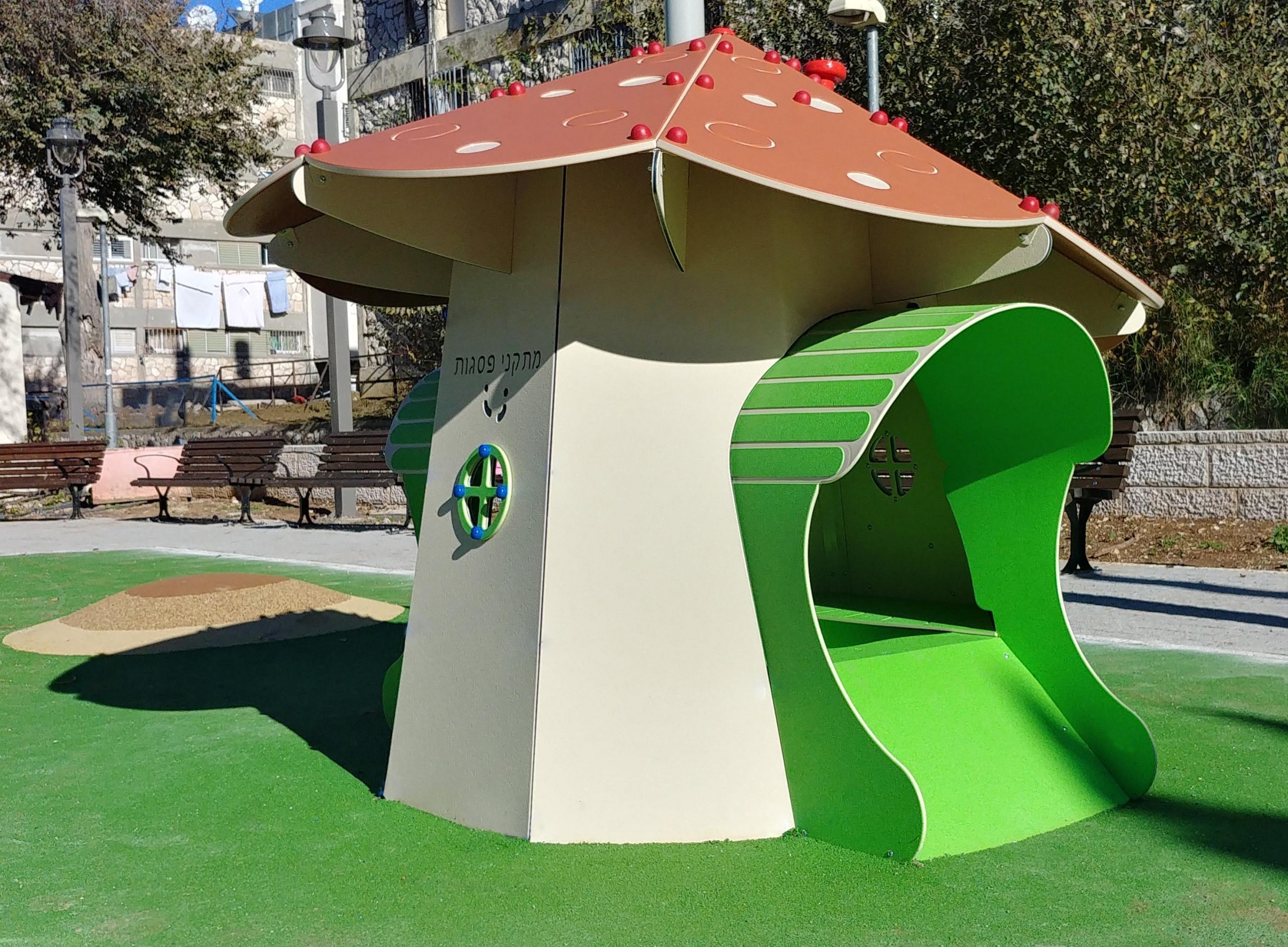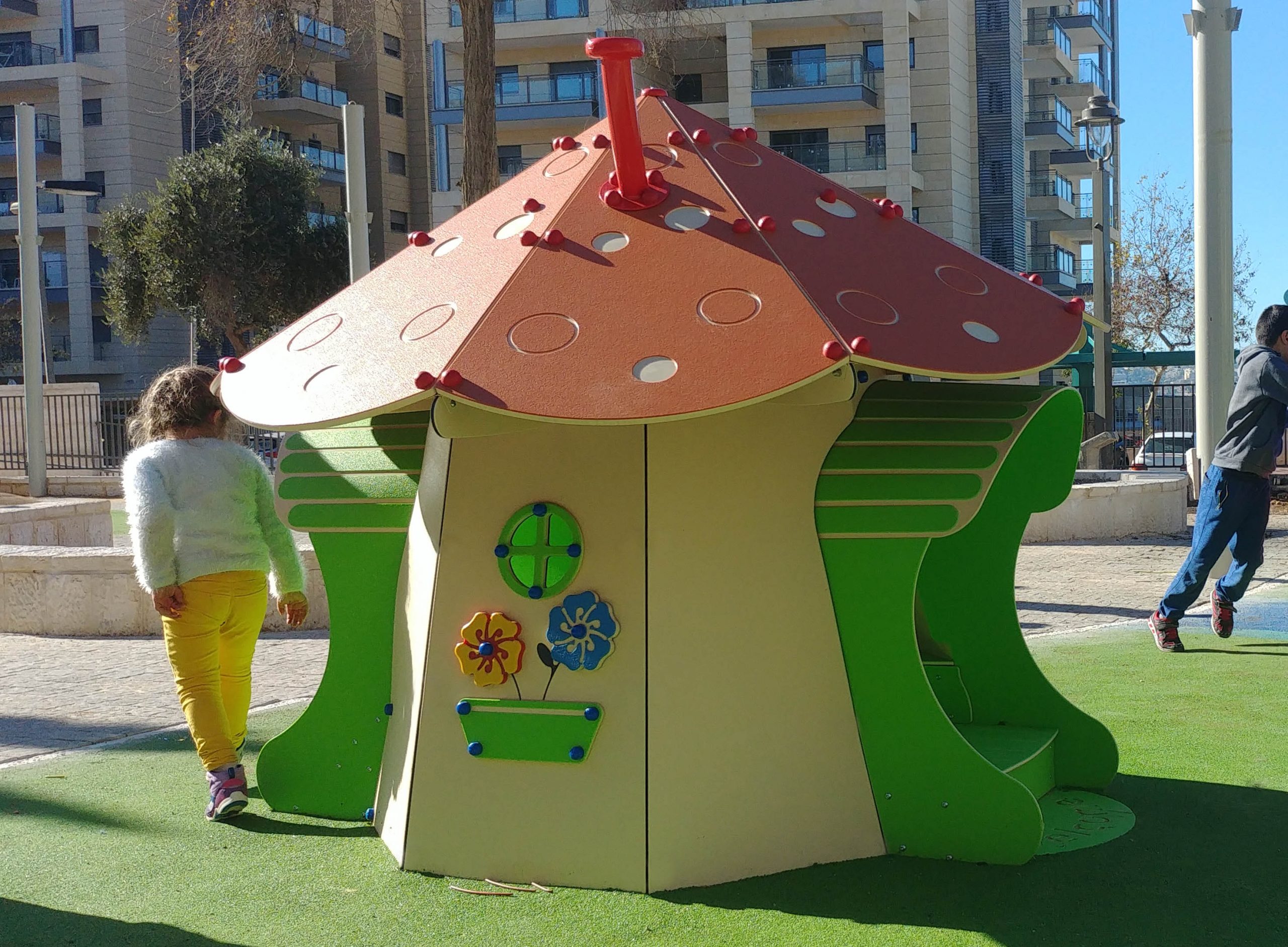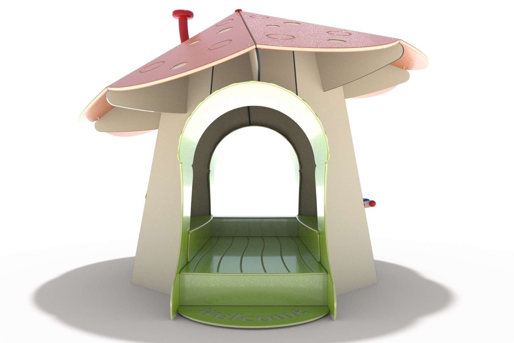 An innovative dollhouse, shaped like an adorable and magical mushroom. Made of HDPE. A fun structure suitable for hide-and-seek and role-play, individually or in a group. It develops emotional intelligence and allows the child a moment of privacy and quiet within the large playground space. Suitable for toddlers and small children.