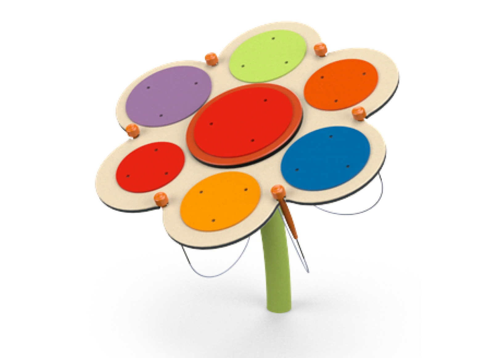 In the ‘Flower’ instrument, sound is visually represented. Each color produces a different note in the scale, and together, they create a wonderful harmony with a pleasant color palette. The sound plates produce powerful resonance due to the round shape of the resonator. The round sound plates are designed to match the sound waves that propagate within, vibrating strongly at the end — resulting in a clear and pure sound. The flower is a captivating instrument, perfect for leading a symphony of colors.