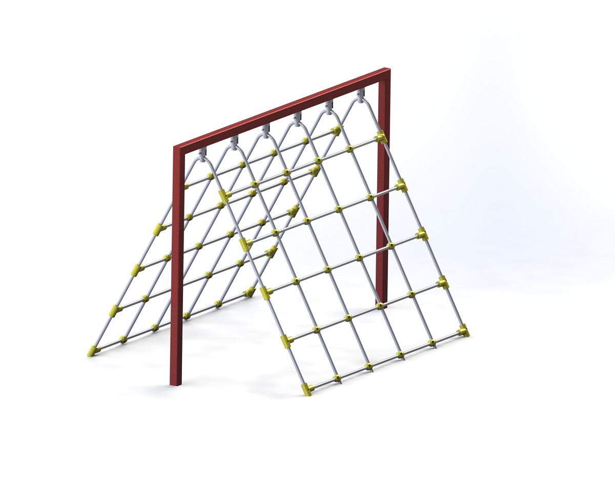 The Neptune is a double-sloped cable climbing structure for challenge and enjoyment. The structure is built from a symmetrical rope net for climbing up to a height of 1.40 m, with the option to descend from the other side of the structure.
