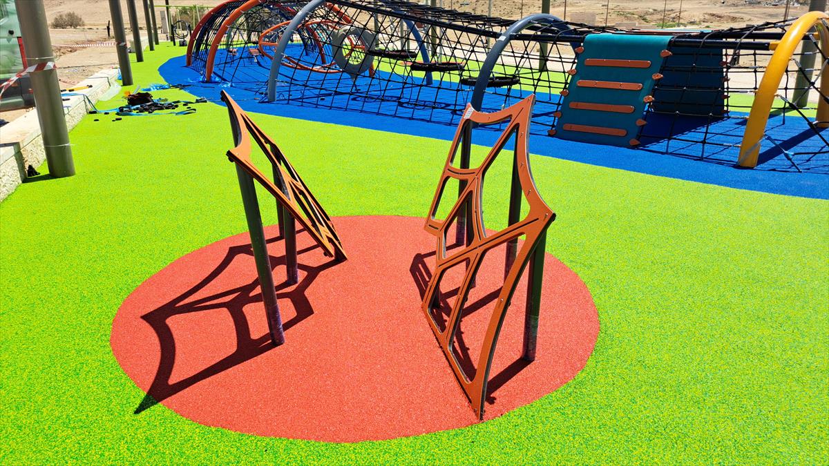 A spiderweb-inspired climbing structure that is 1.10 meters tall. Suitable for playgrounds as well as challenge, obstacle and fitness courses. Bolsters self-confidence, strengthens muscles and movement.
