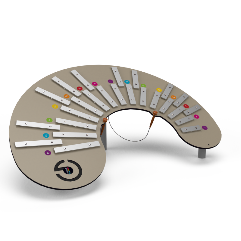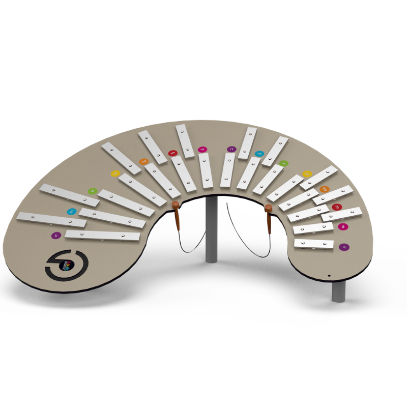 The organ is a fully professional, chromatic instrument. It is tuned based on half-note intervals and designed similarly to a piano. The notes on the lower row are the repeated notes of the familiar C major scale: do, re, mi, fa, sol, la, si, do, re, mi, fa… The notes on the upper row, similar to a piano, represent the half-notes between the whole notes (these notes are marked with # – sharp in music). Chromatic instruments allow for the playing of all possible scales and songs in the Western world. The organ comes with a pair of mallets.