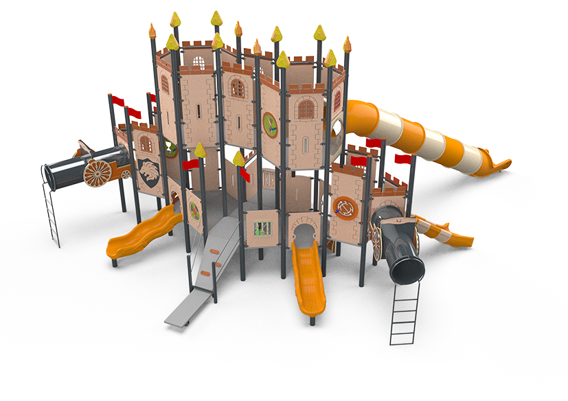 The Richmond is a uniquely designed play system simulating an impressive castle. The structure is a wide building full of levels and elements for climbing, play, and sliding, providing children with a dynamic and challenging play experience. The unique castle design encourages imaginative play and adventures, while developing physical skills such as strength, balance, and coordination. Richmond is suitable for children of various ages and serves as a prominent attraction in playgrounds for knights and princesses.