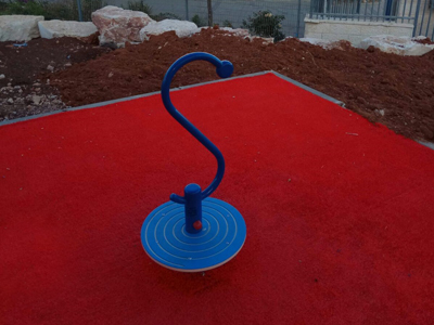An S-shaped spinner for individual use with a central axis. Constructed of galvanized metal and HDPE plastic, it features an advanced bearing system of both a horizontal bearing and a conical bearing. The bearings are durable and suitable for diverse climates, featuring sealing discs and self-lubrication that ease equipment maintenance. The spinner is challenging, allowing the child to practice force regulation and balance, and strengthen arm and pelvic muscles.